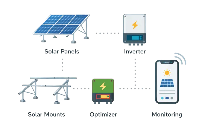 All packages include our optimizers, continuously monitoring and adjusting the voltage and current of each solar panel to maintain optimal performance.